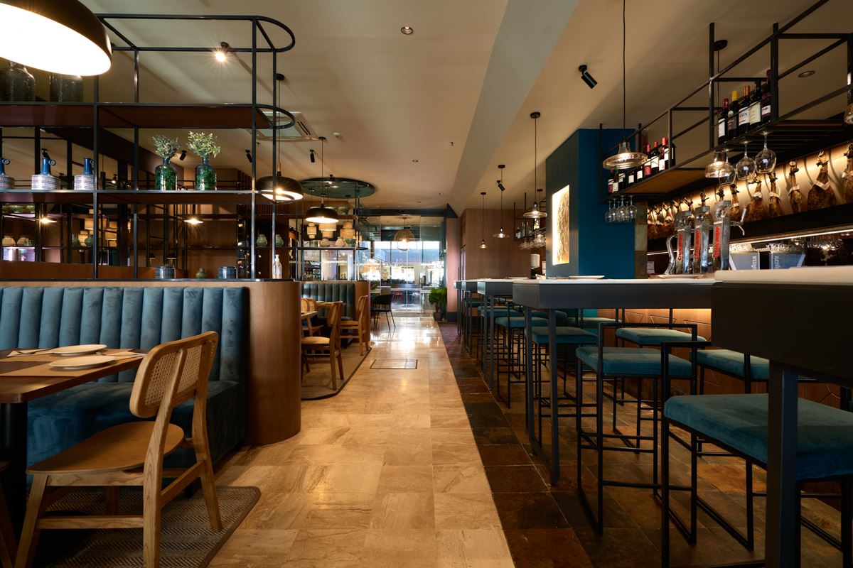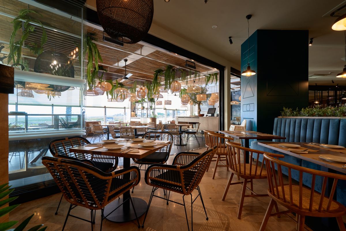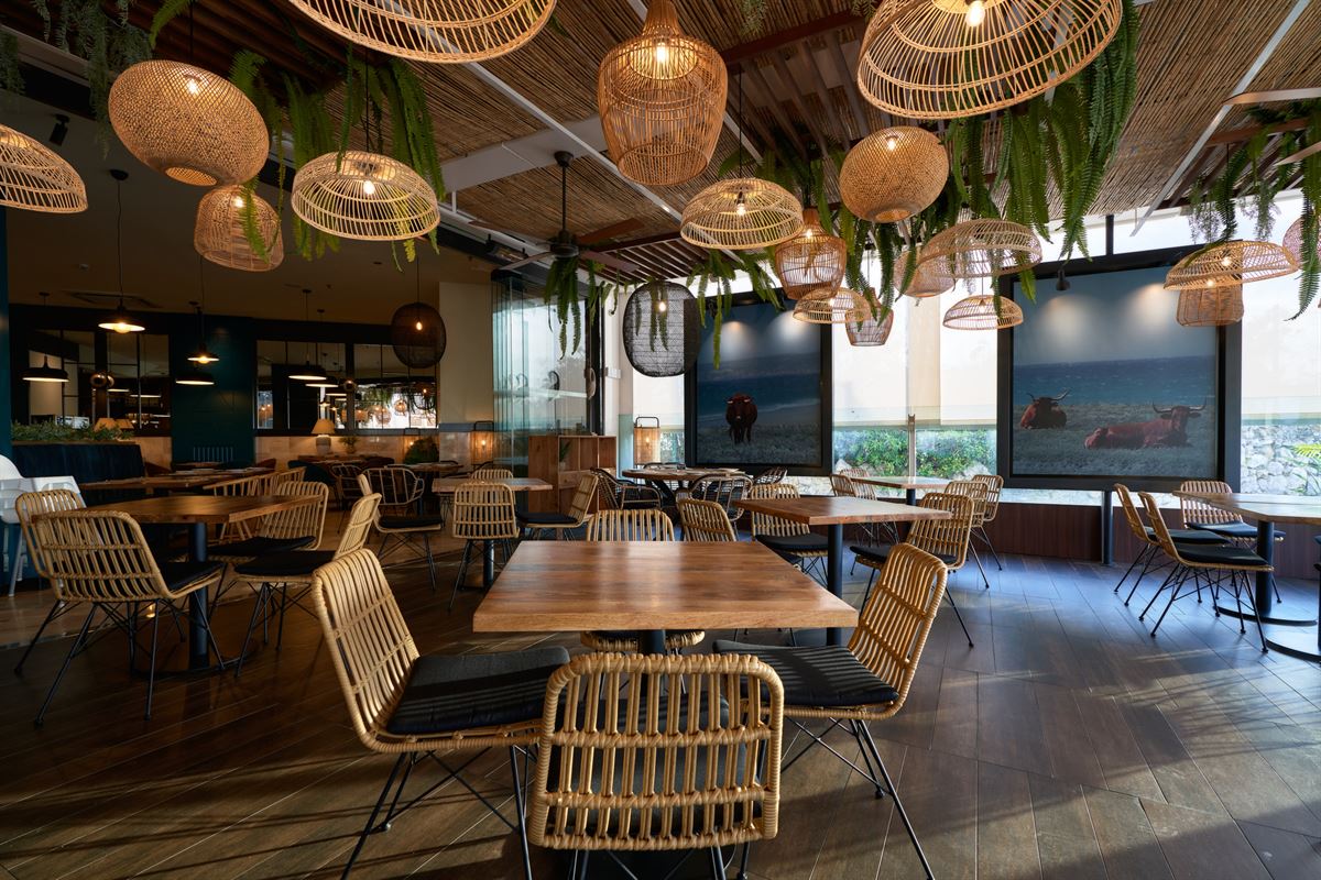 Avec une prédominance des couleurs marine, marron et terre dans les chaises et les tables ; des matériaux naturels comme le bois, le rotin ou la corde pour les chaises et les paravents ; et la fraîcheur des métaux noirs dans les luminaires et les étagères, ou le verre dans certaines de ses lampes. Le tout nous enveloppe dans un espace plein de détails et très chaleureux, pour y déguster de mets savoureux entouré d’une décoration soignée.