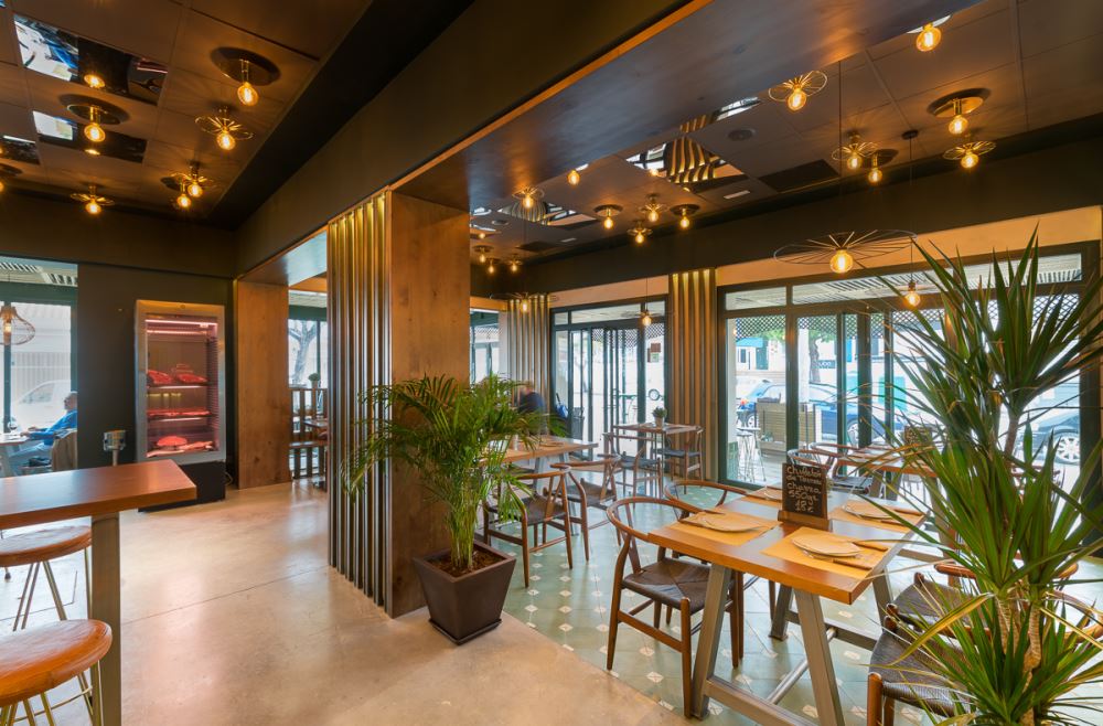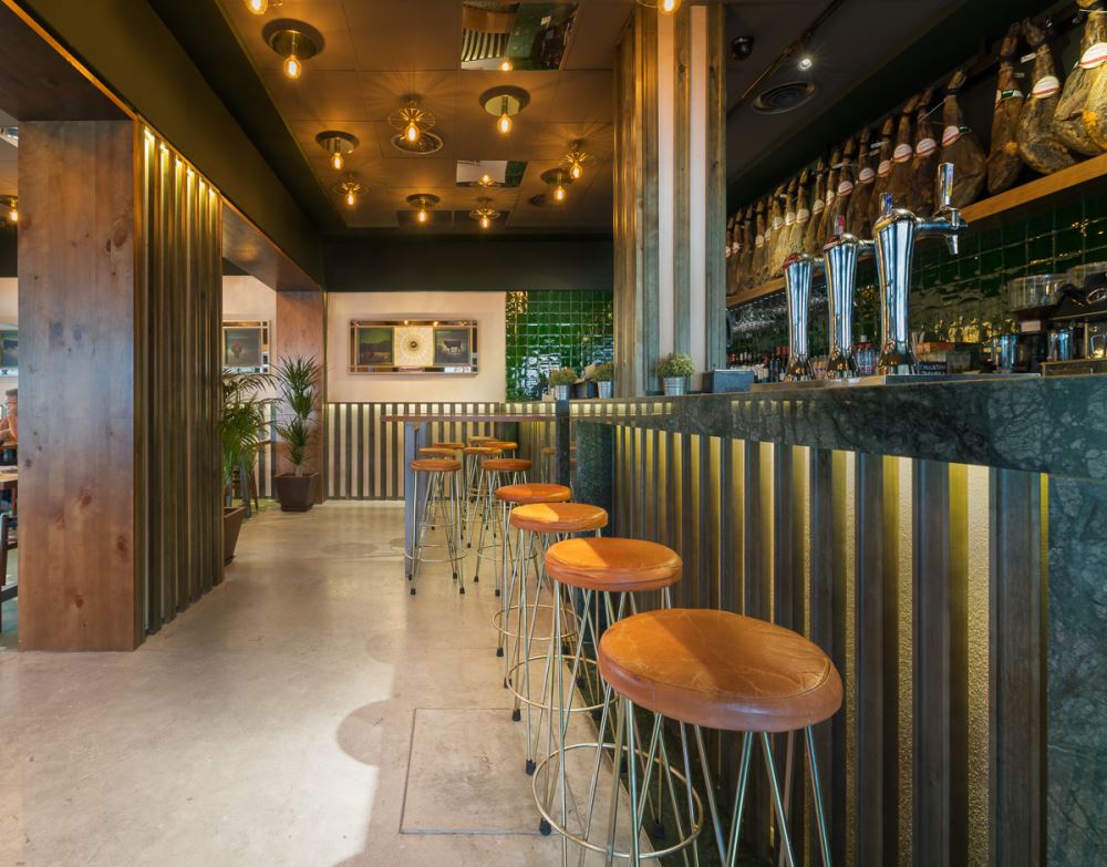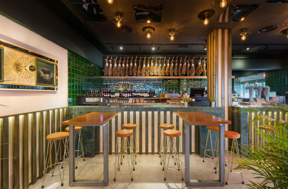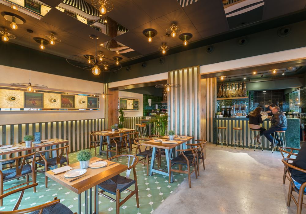 Il s’agit de la deuxième collaboration entre les architectes d’intérieur de CM4 et la chaîne de restaurants espagnols “Fogón de Mariana”.