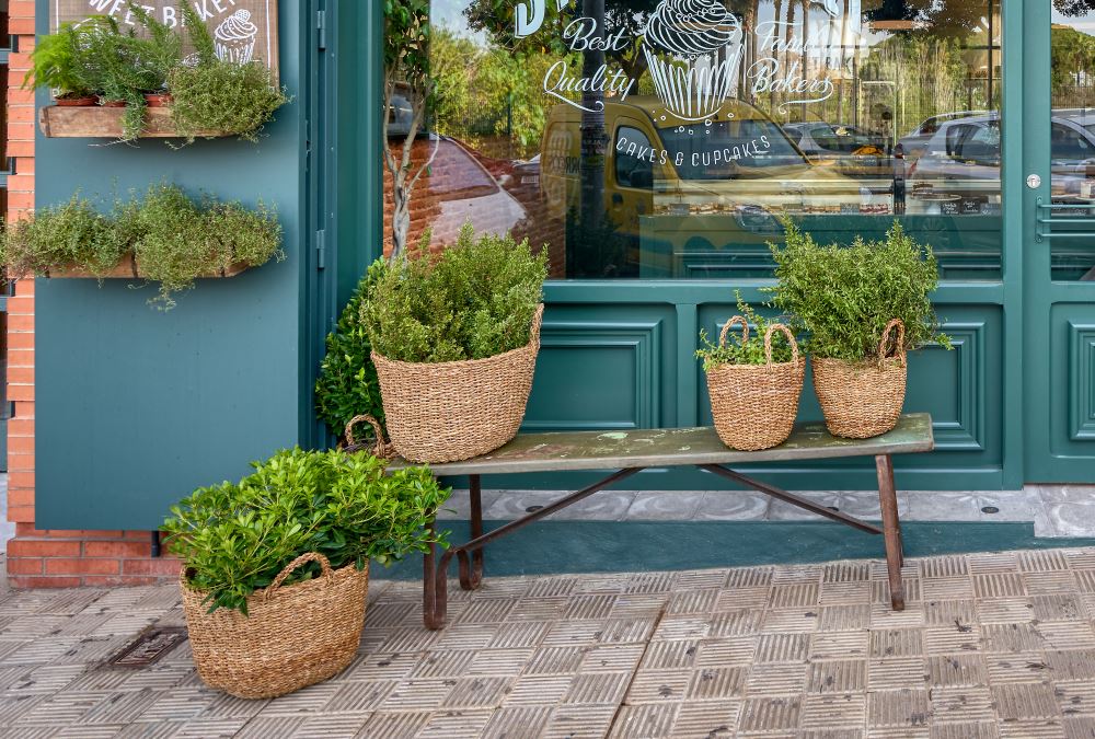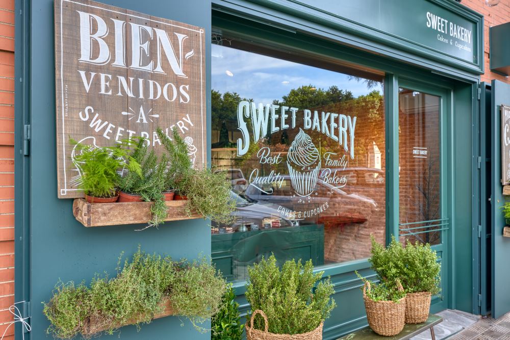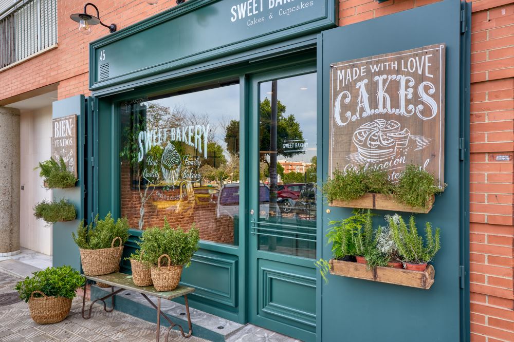 Sweet Bakery es une pâtisserie artisanale qui fabrique sur place tartes, gâteaux, cupcakes et autres mets sucrés. Le design de l’établissement est ce qui saute aux yeux en premier et ce dès l’extérieur, avec ses portes en fer ornées de plantes et de paniers en osier.
