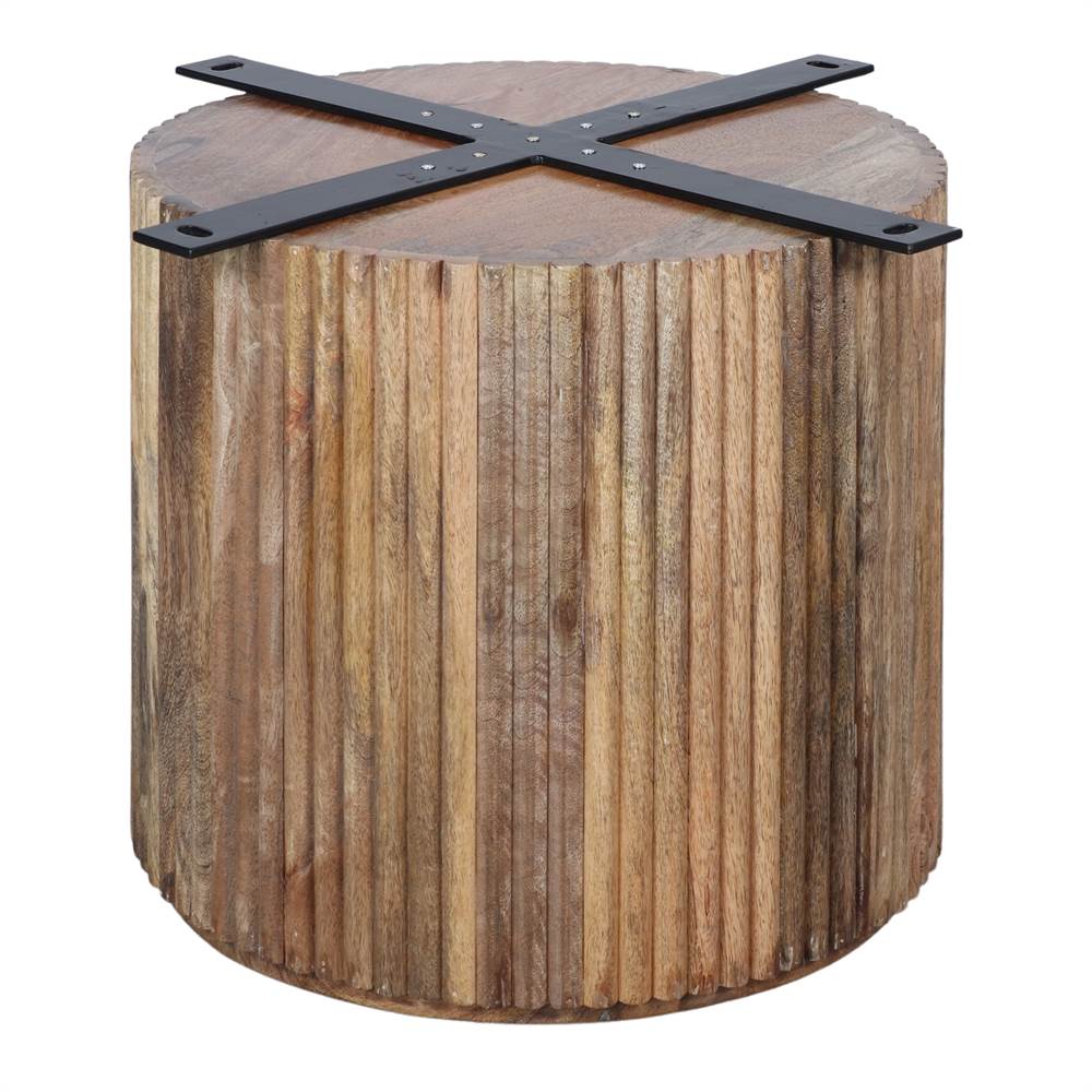 Fabriquée en bois d’acacia avec une base cylindrique en lattes.