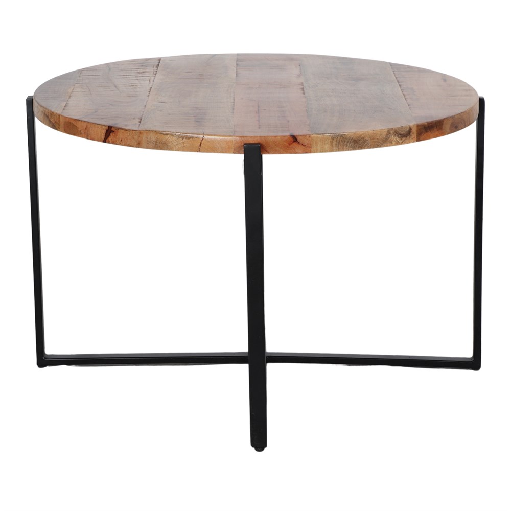La table d’appoint BELLADONA est de style industriel. Elle est fabriquée en bois tropical, avec un plateau circulaire et une structure métallique recouverte d’une peinture en poudre noire.