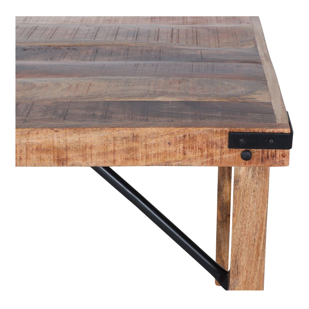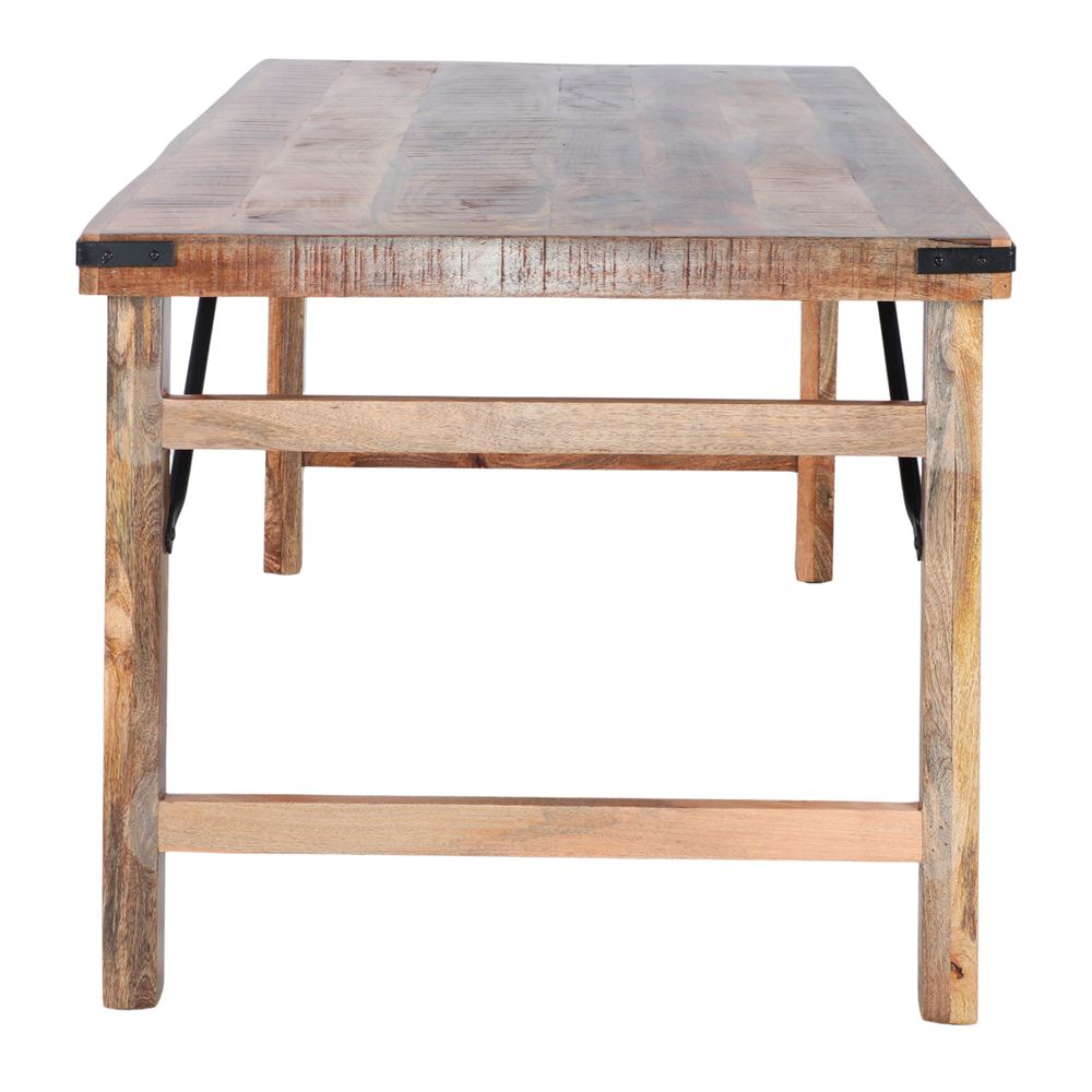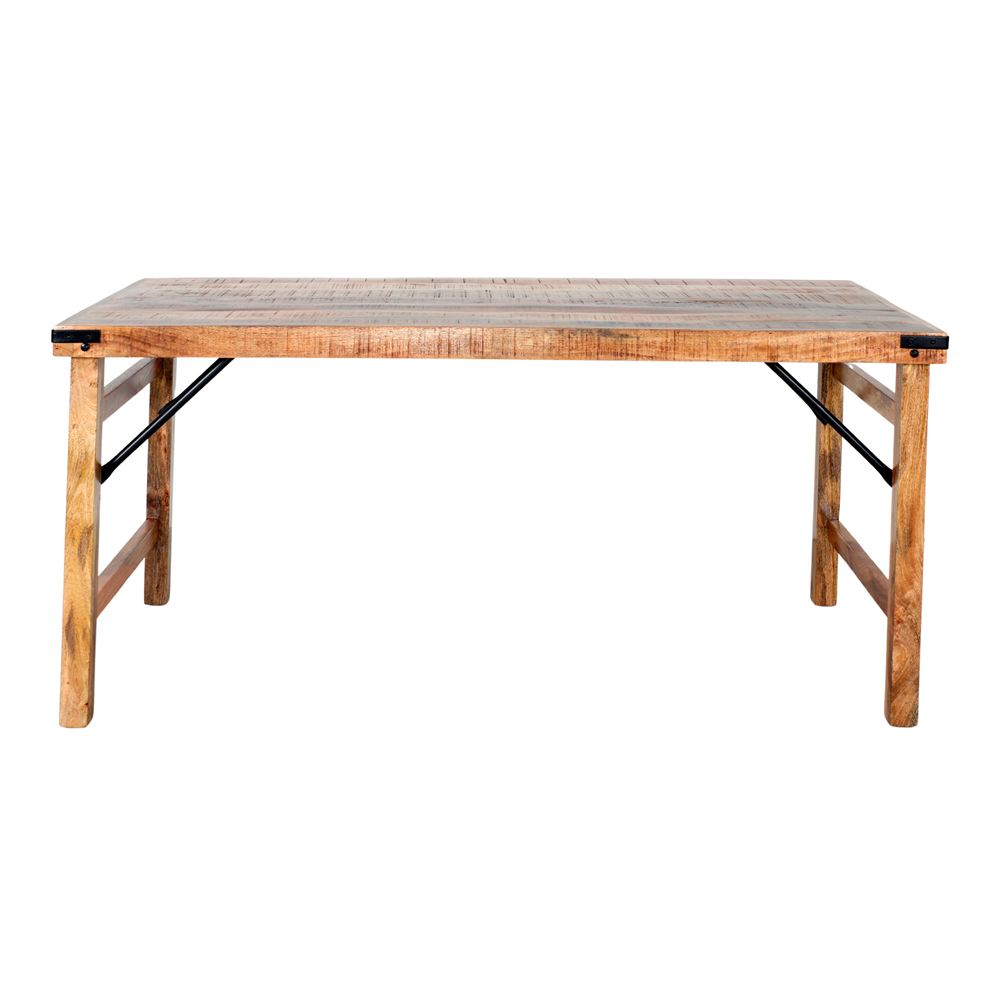 Table pliante en bois de style industriel. Une table polyvalente, en bois tropical, qui a aussi la particularité d’être pliante: vous pouvez replier ses pieds et la transporter facilement.
