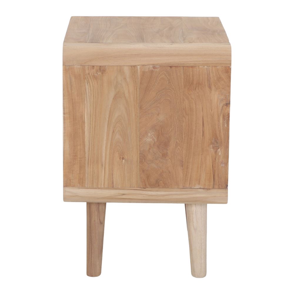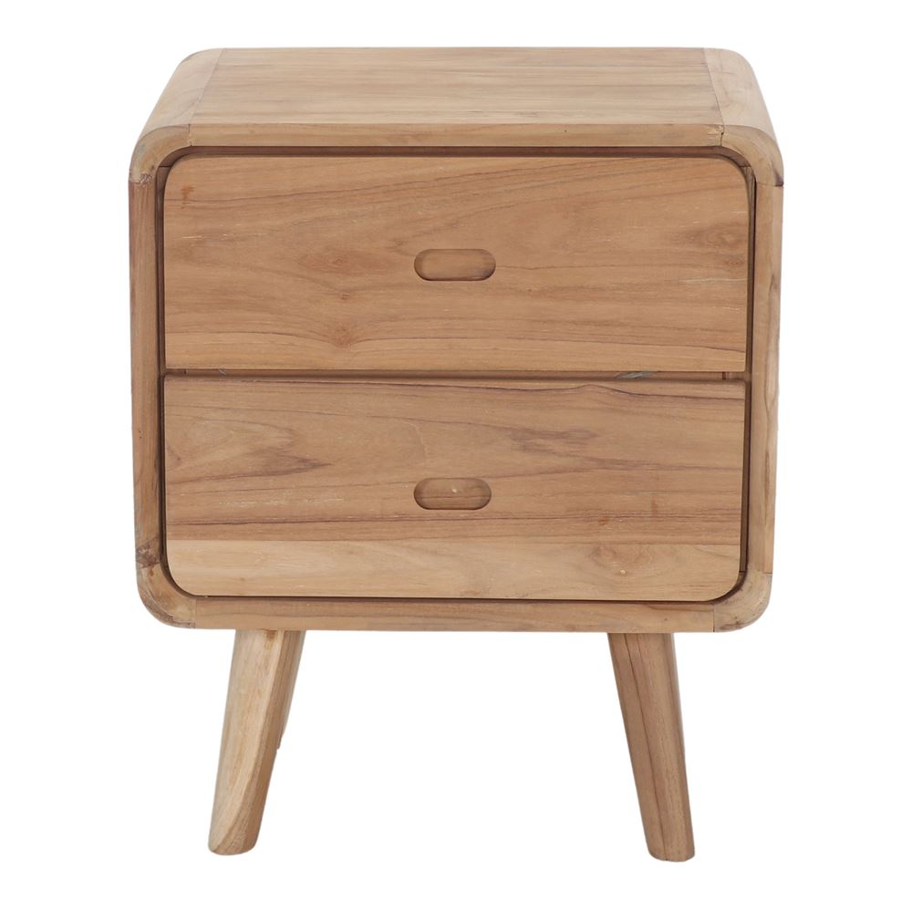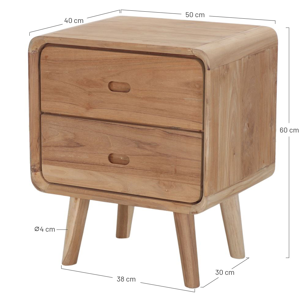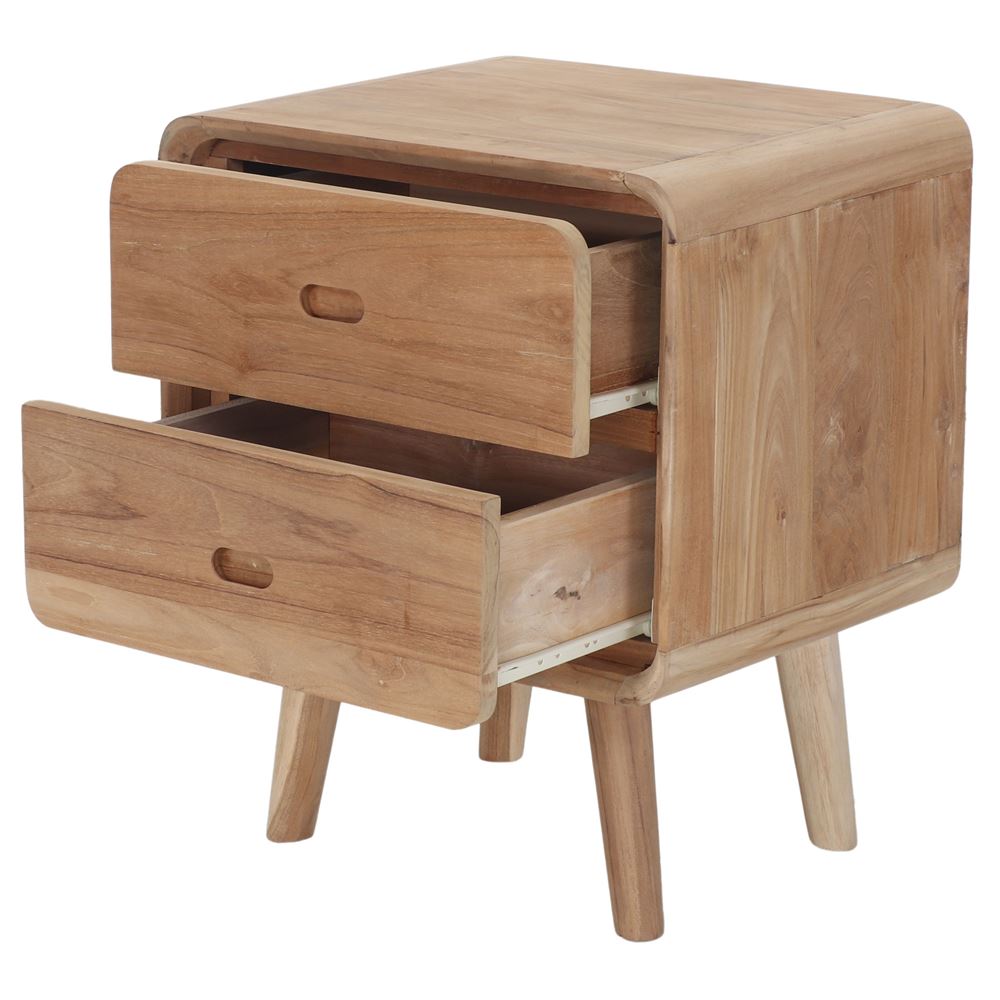 Fabriquée en bois de teck massif, avec deux tiroirs.