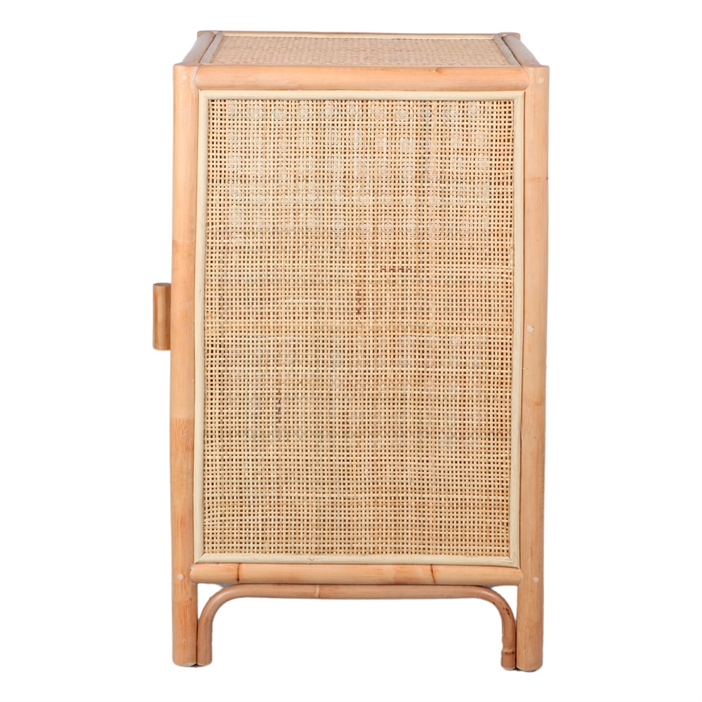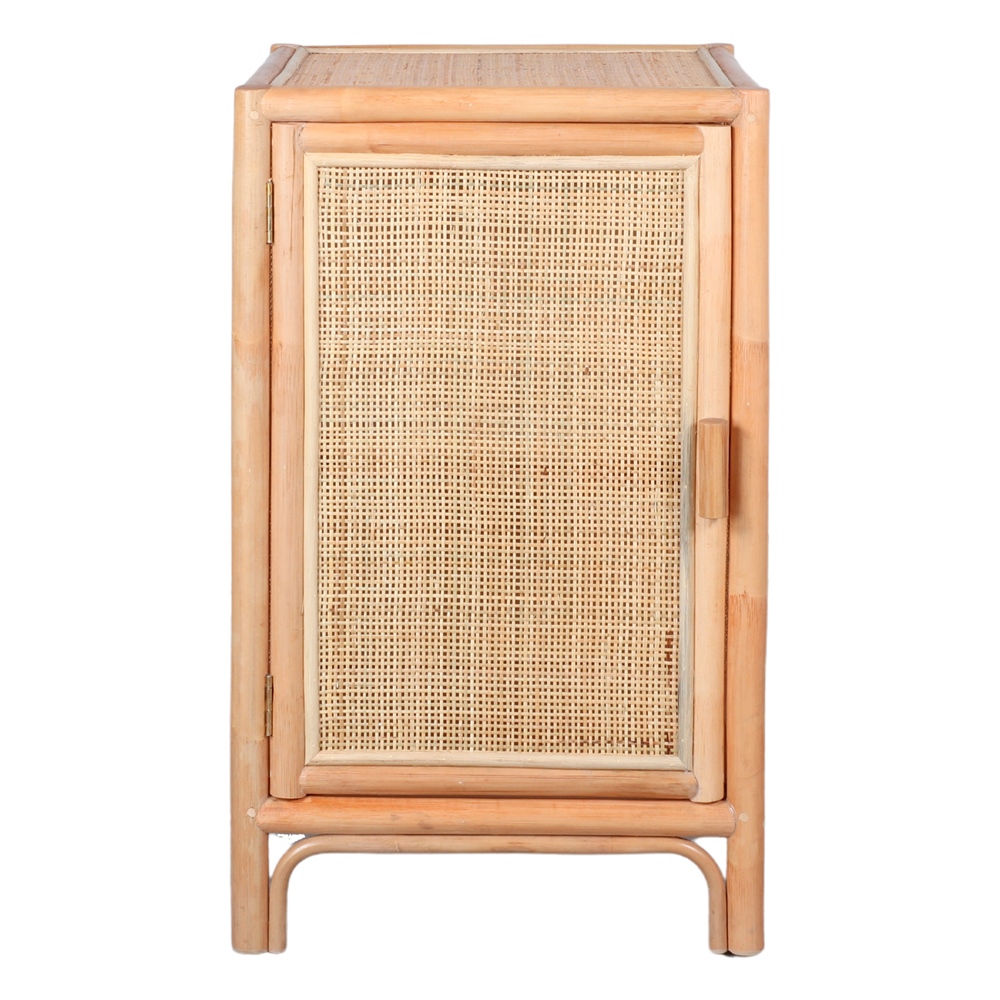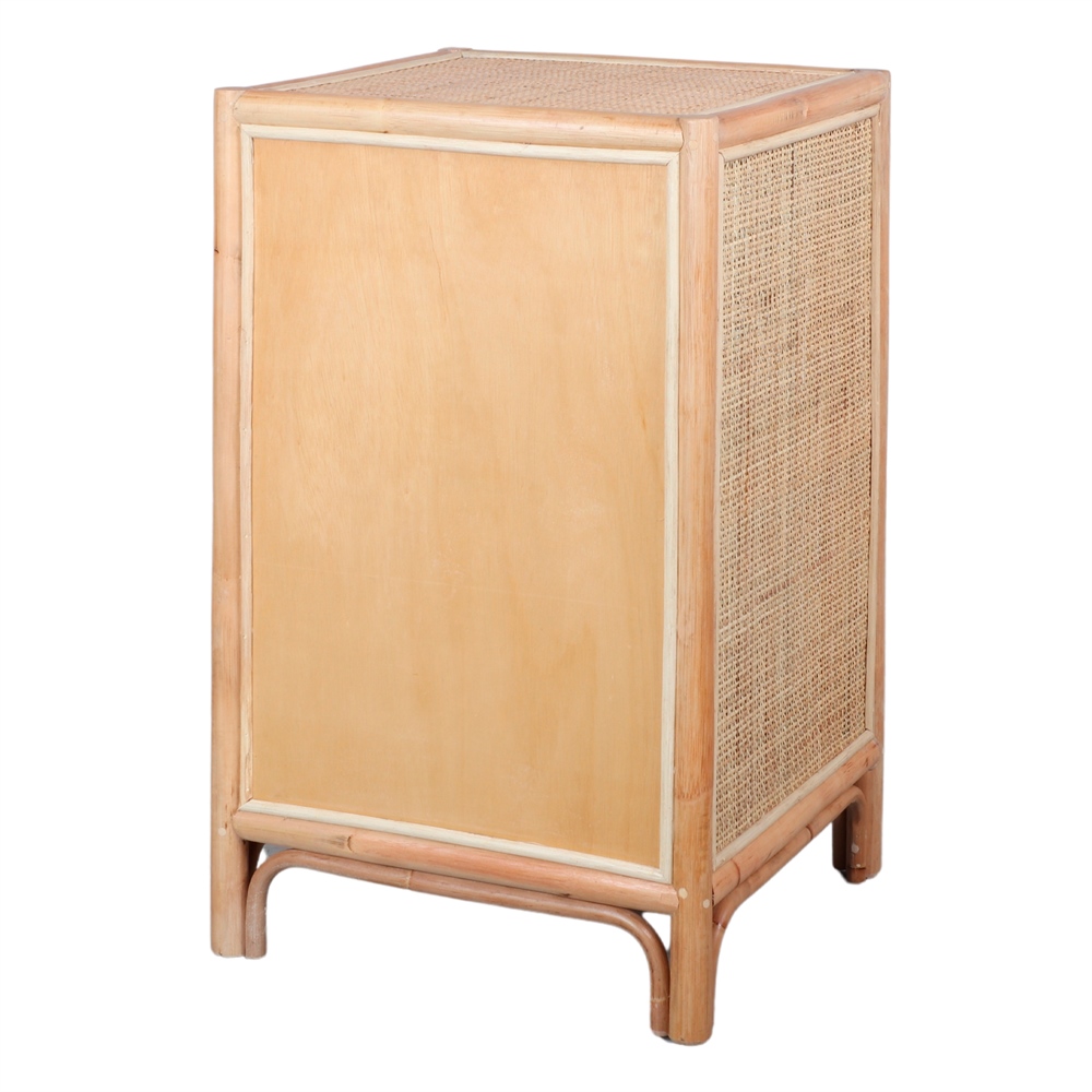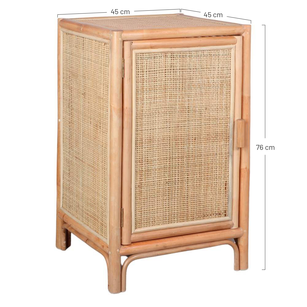 Avec porte frontale en bambou naturel avec façade en maille de rotin type cannage.