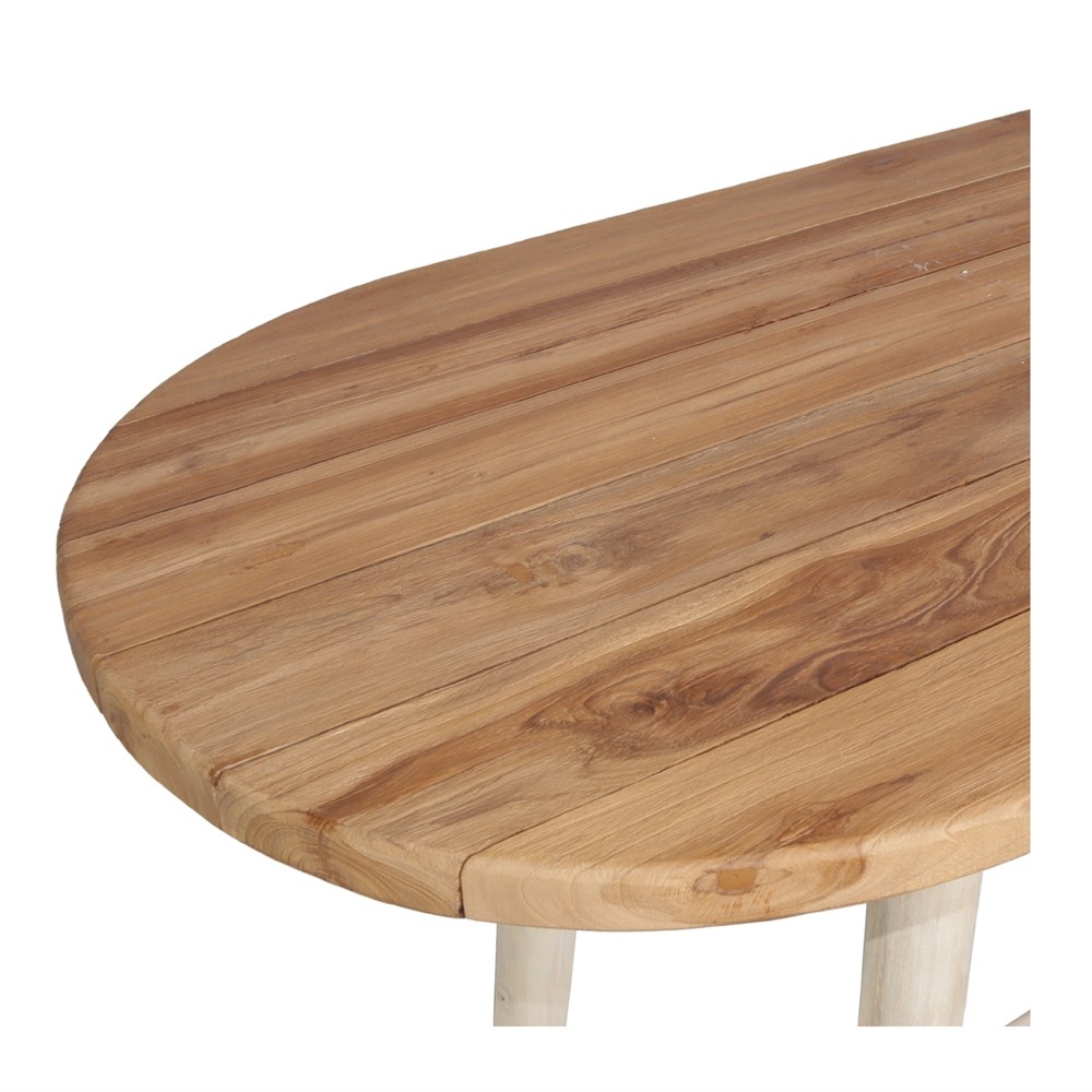 La table haute en bois Foscari est un meuble au style rustique marqué. Fabriquée en bois de teck massif, cette table haute avec un plateau ovale est parfaite pour accueillir plusieurs convives.