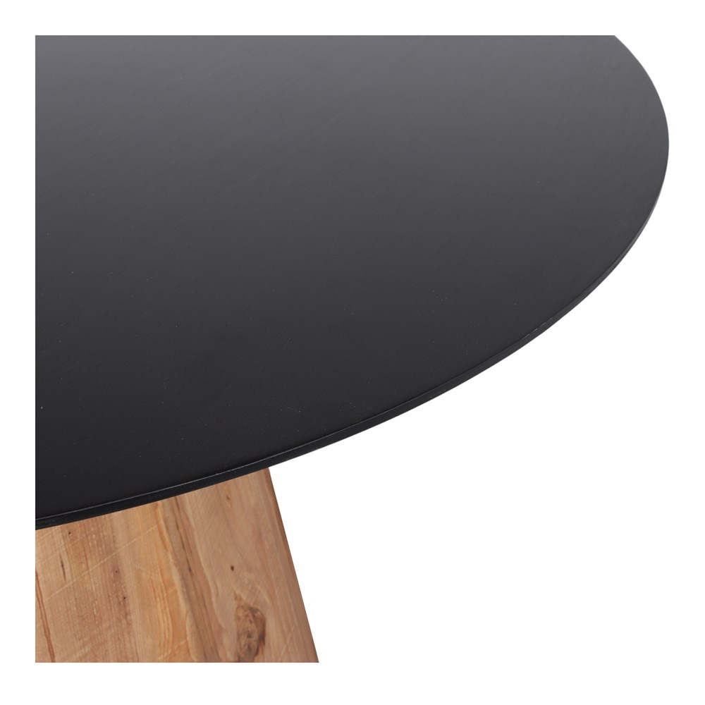 Structure en bois de pin recyclé et plateau en contreplaqué avec bord chanfreiné peint en noir.