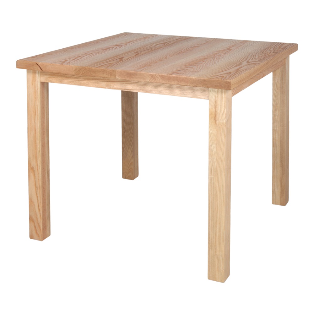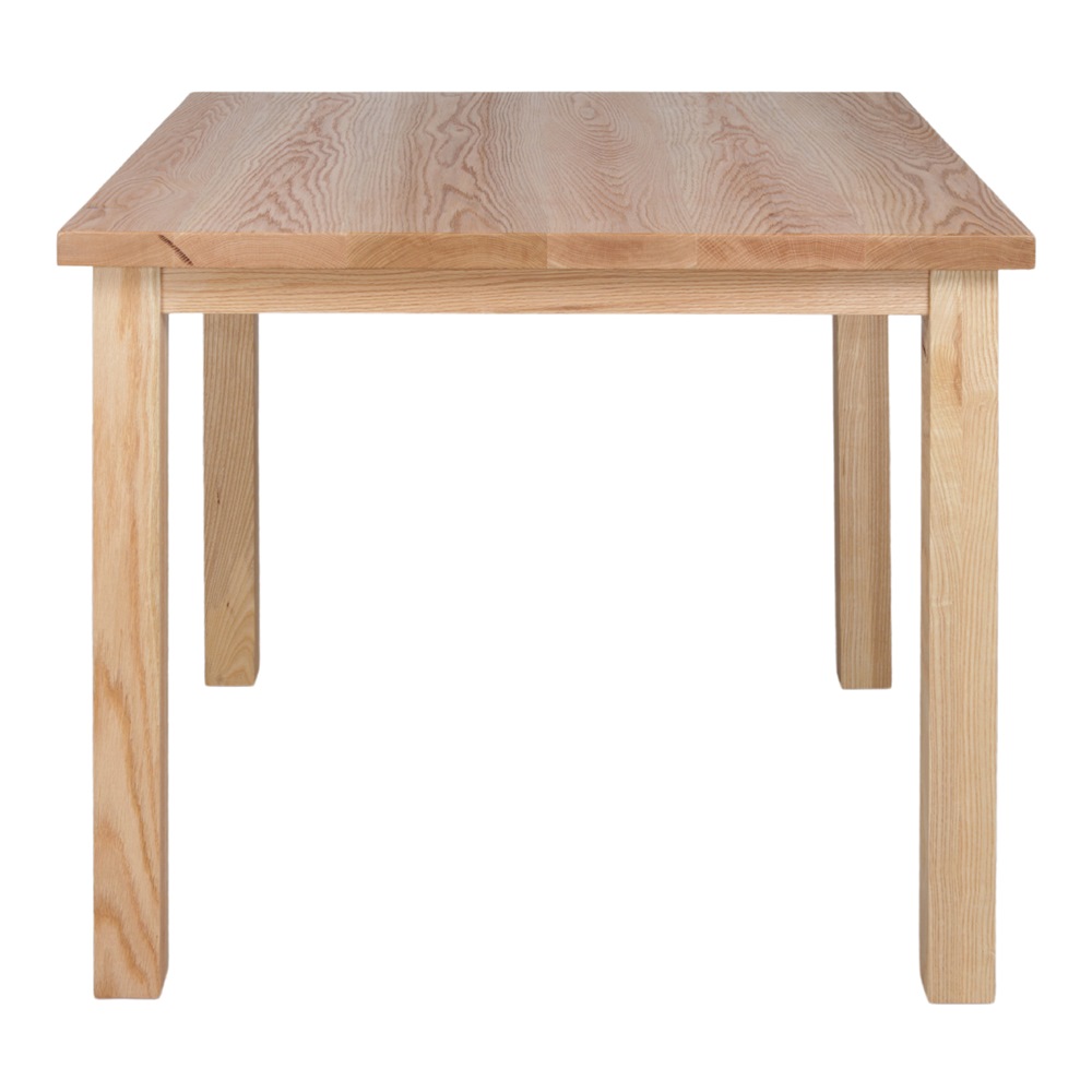Table de salle à manger en bois, en pin des Flandres massif lisse.