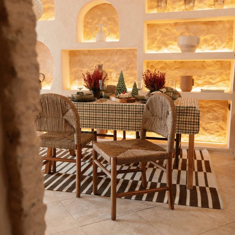 Table de salle à manger en bois Minadra, style méditerranéen.
