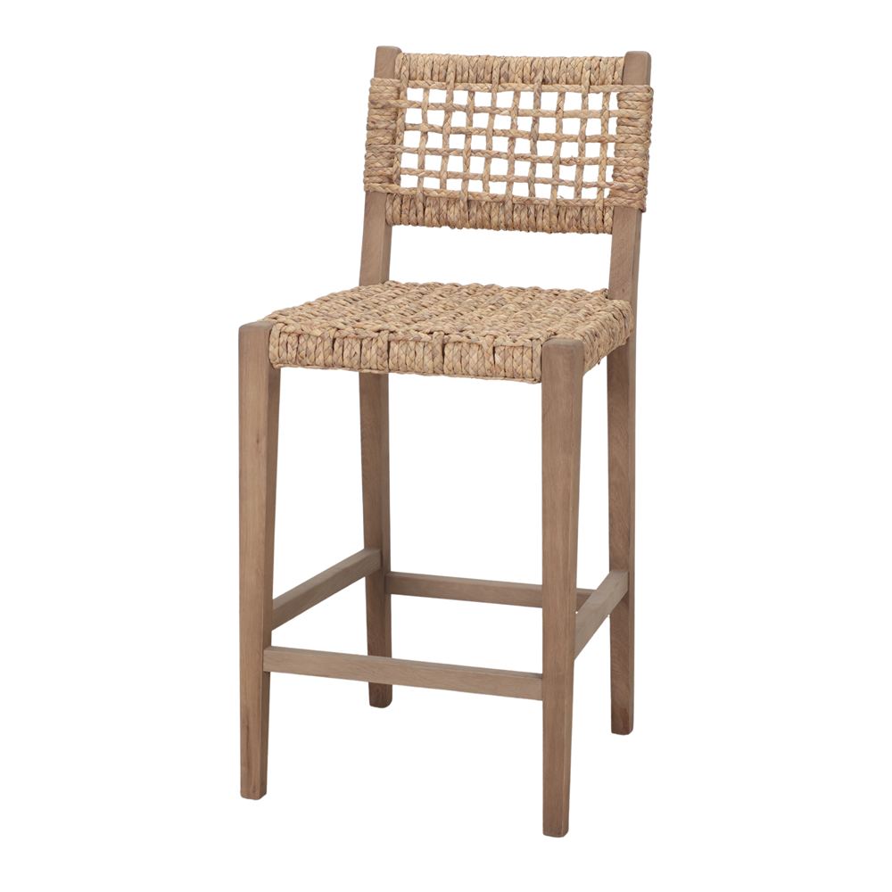 Tabouret haut en bois et fibre Nearly, de style méditerranéen.