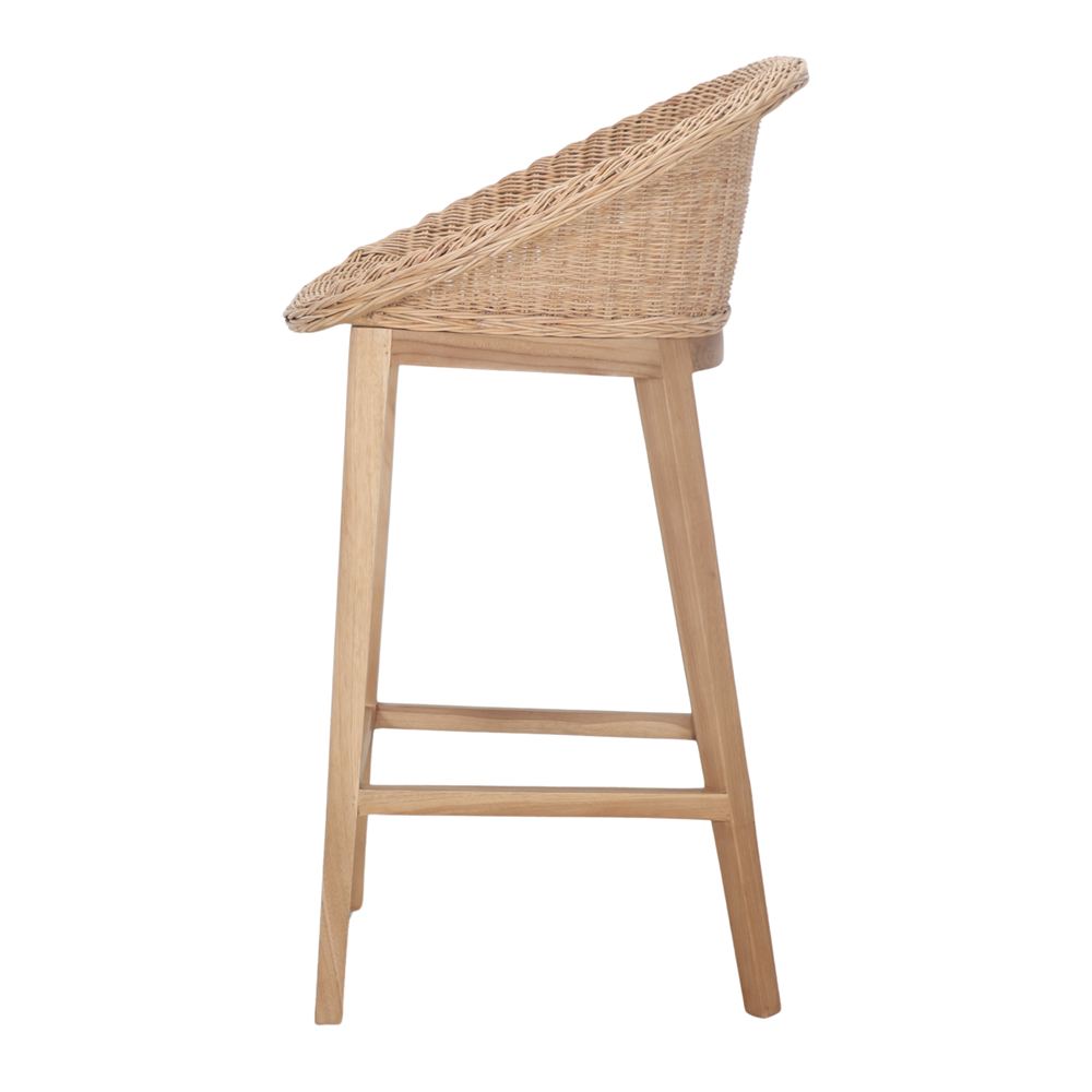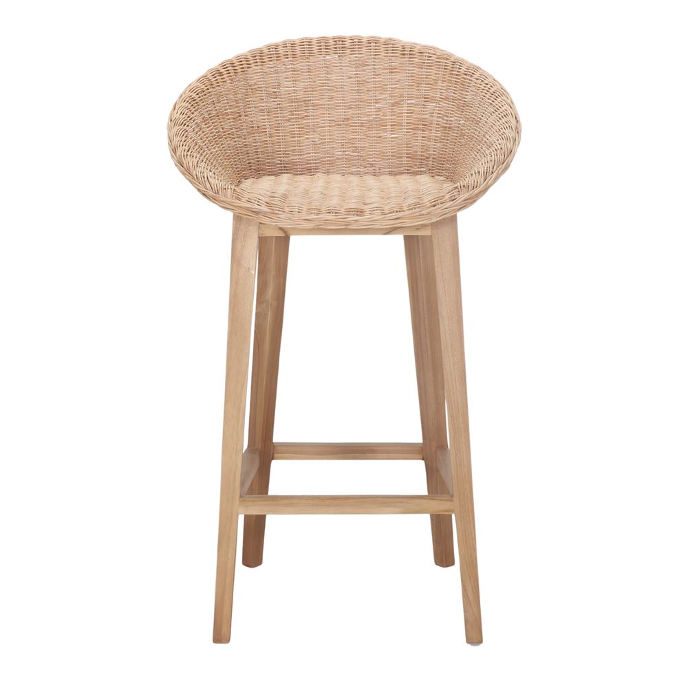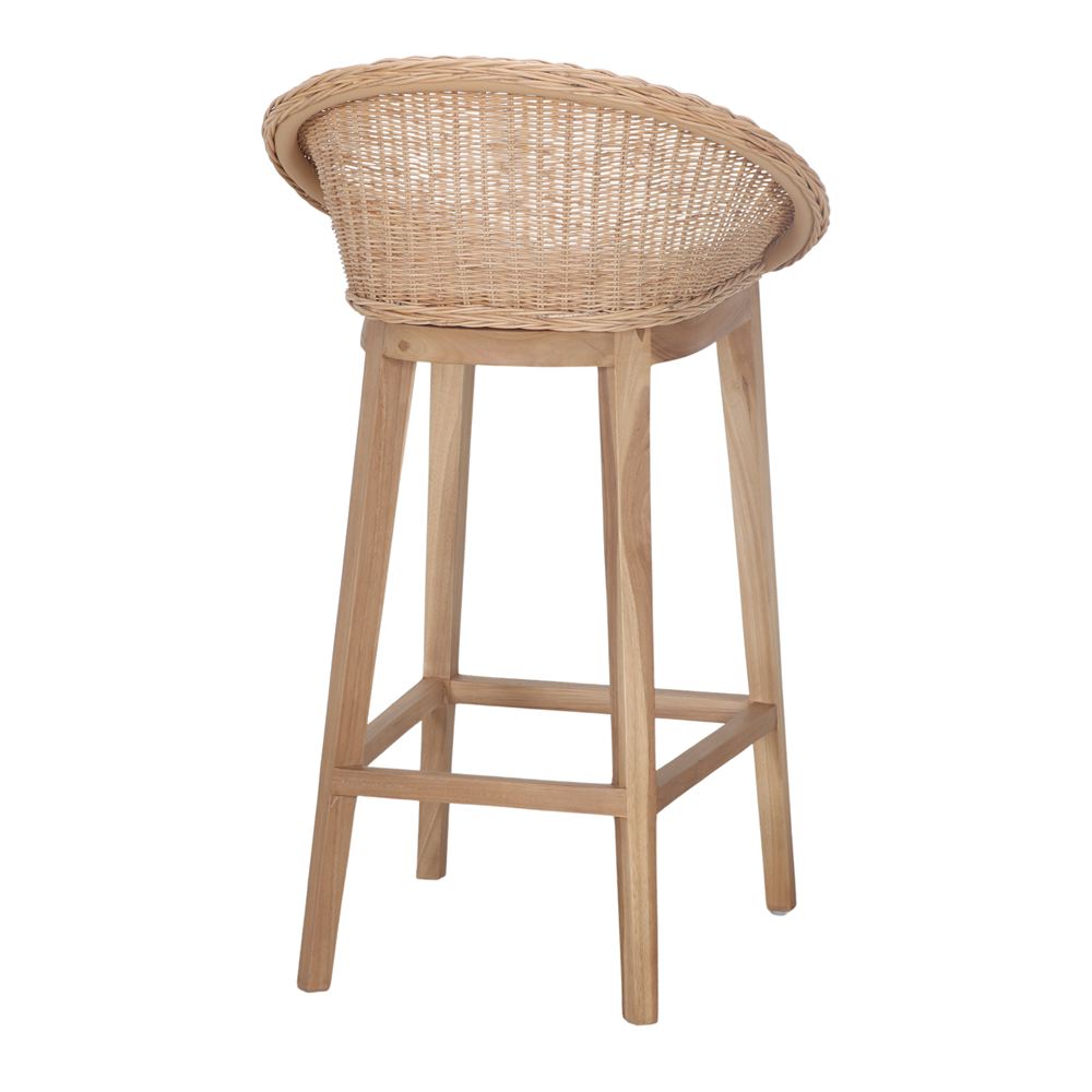 Tabouret haut en bois et fibre synthétique Arden, de style méditerranéen.