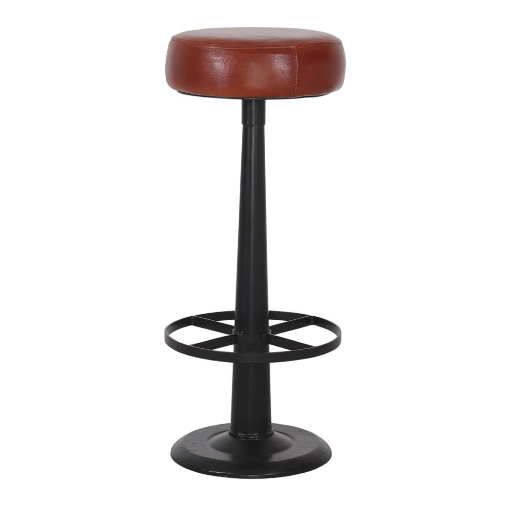 Tabouret haut en métal et en cuir Alexis, de style industriel vintage.
