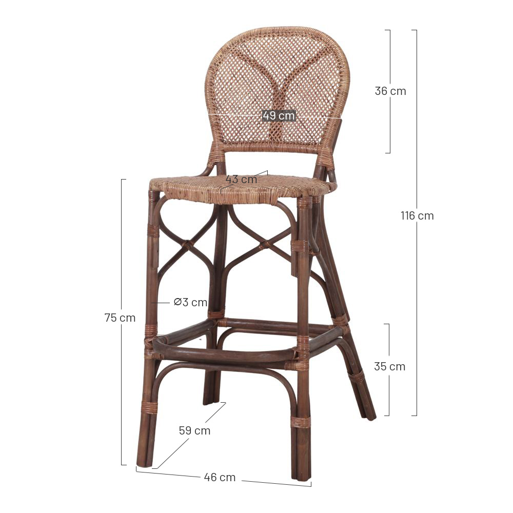 Il est toutefois important de noter que ce tabouret n’est pas adapté à un usage extérieur, le rotin naturel pouvant se détériorer en cas d’exposition prolongée aux éléments. Par conséquent, assurez-vous de le placer dans un environnement intérieur où vous pourrez profiter pleinement de sa beauté sans restrictions et offrir un confort exceptionnel à vos invités ou clients. Avec le tabouret haut en rotin Etroc, vous vivrez des moments mémorables dans un environnement charmant et raffiné.