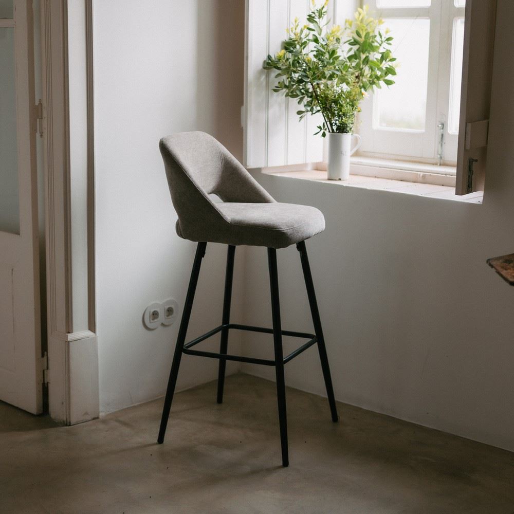 Le tabouret haut tapissé Bangasy est fabriqué en métal et son revêtement est en tissu. Sa structure solide le rend résistant et très stable. Il est par ailleurs très confortable, grâce à son design enveloppant et à son revêtement doux et agréable. Ce tabouret est parfait aussi bien pour un usage professionnel que domestique. Avec un style Mid Century très marqué, vous pouvez l’associer avec des tables aux structures métalliques et des plateaux en marbre ou en terrazzo, des appliques en métal avec des abat-jour en verre, ou créer votre propre style en le combinant à des fibres naturelles et autres revêtements.
