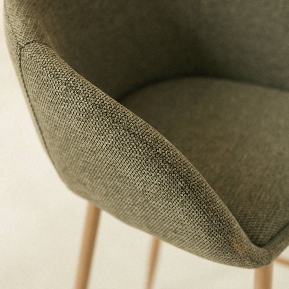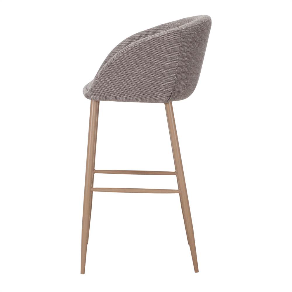 L’assise et le dossier sont recouverts de textile, offrant un confort supplémentaire sans sacrifier l’esthétique moderne du design. Sa forme ergonomique et sa hauteur le rendent parfait pour les îlots de cuisine, les tables hautes ou les bars, alliant confort et style dans un seul produit.
