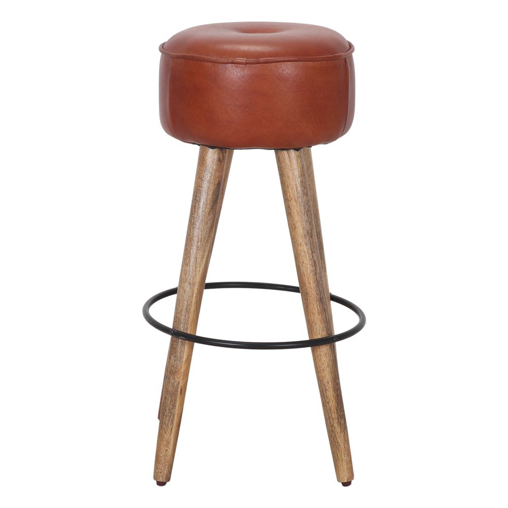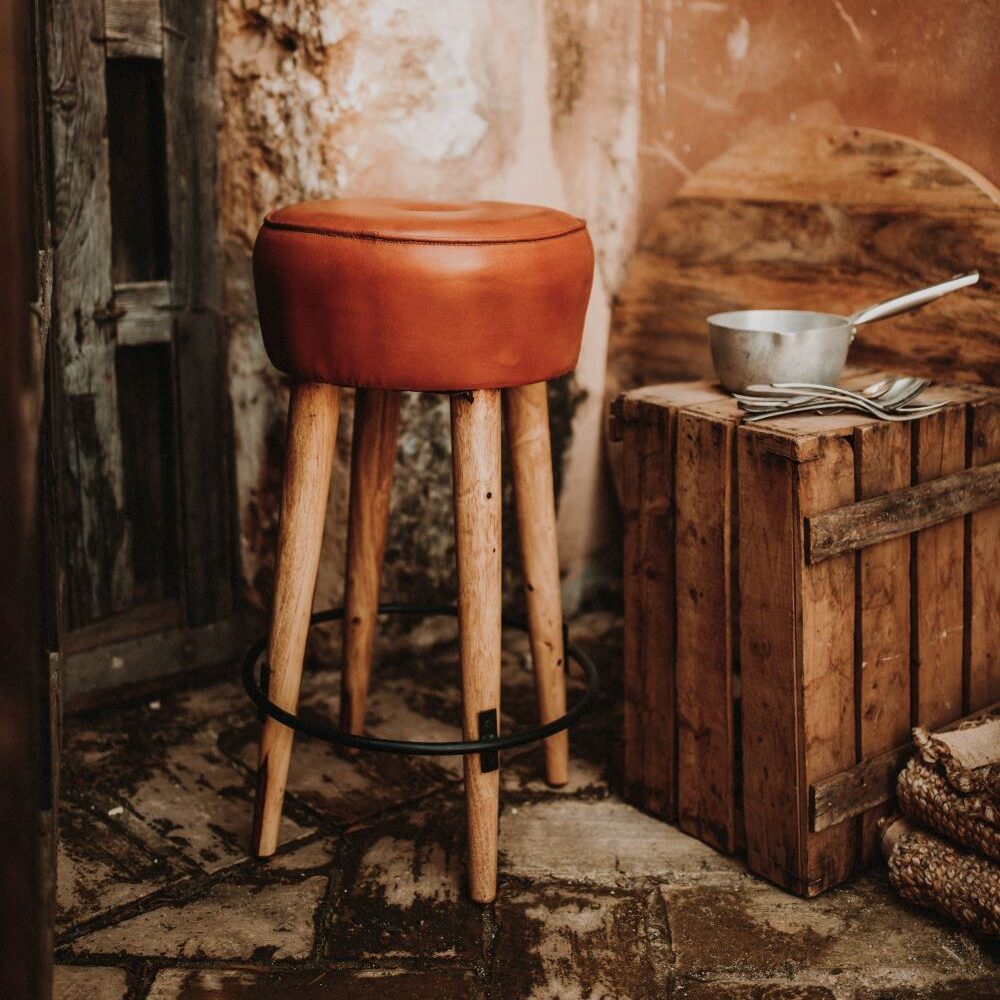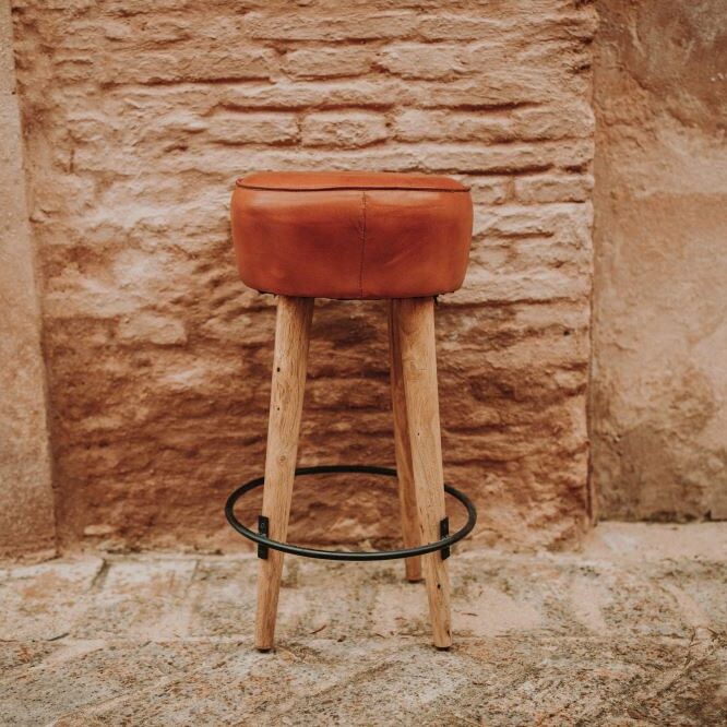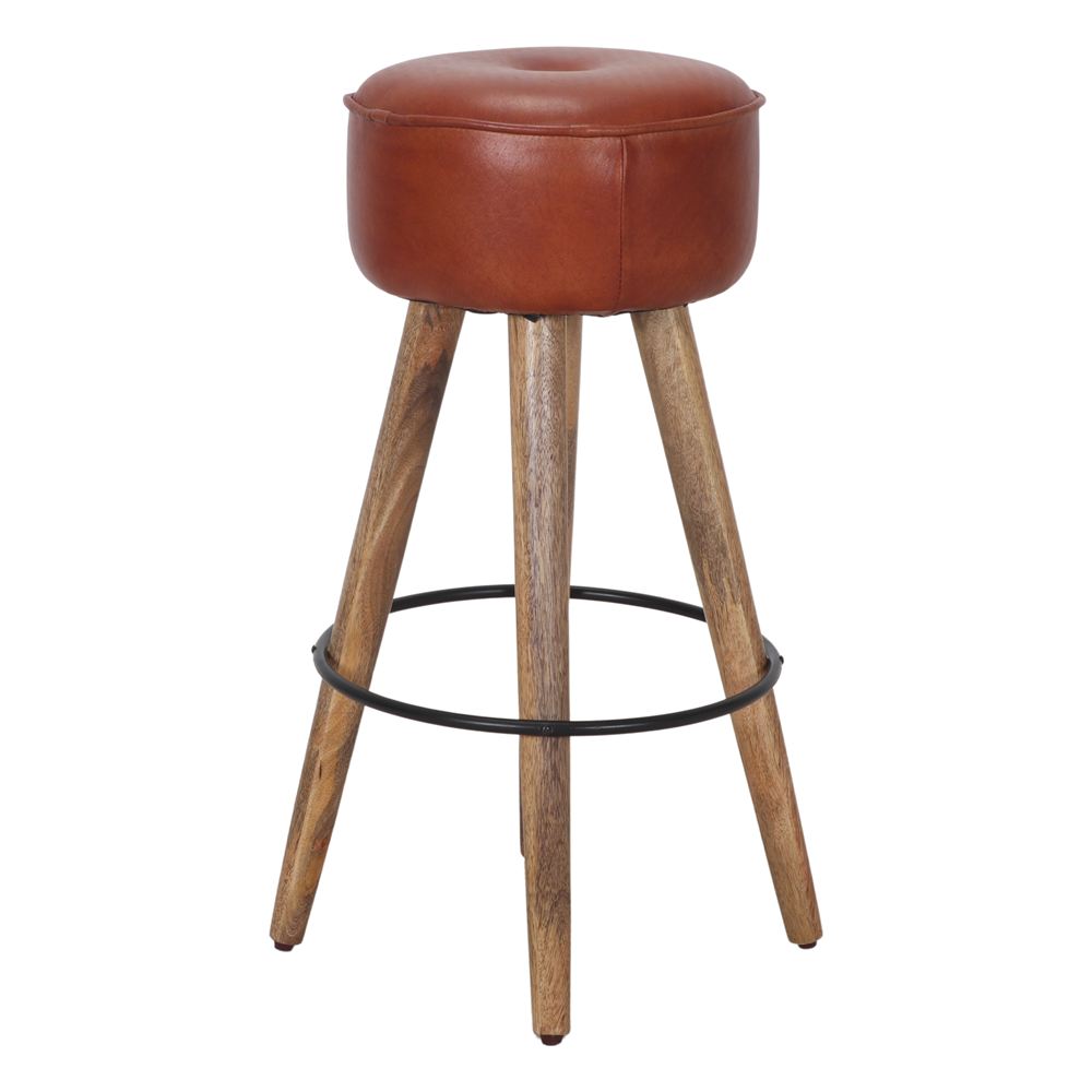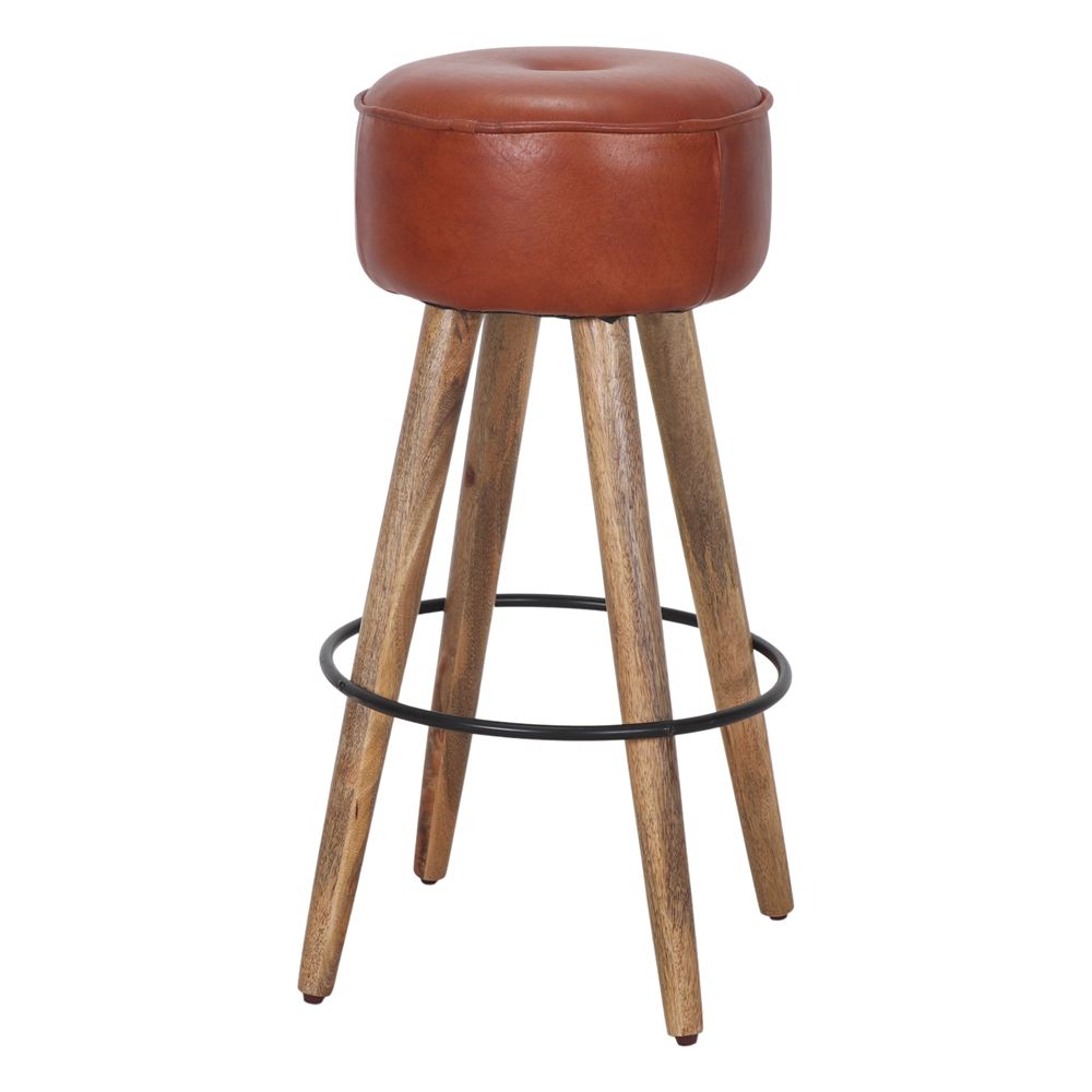 Tabouret haut en cuir et en bois Colt, de style industriel et vintage.
