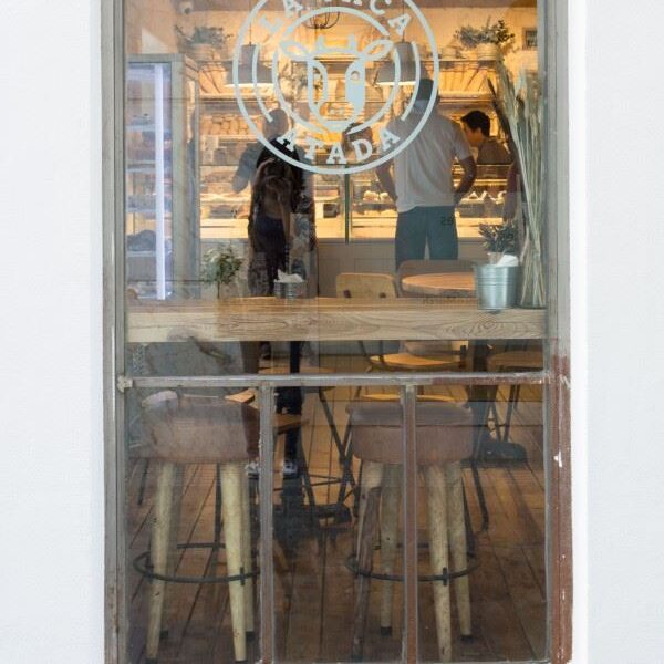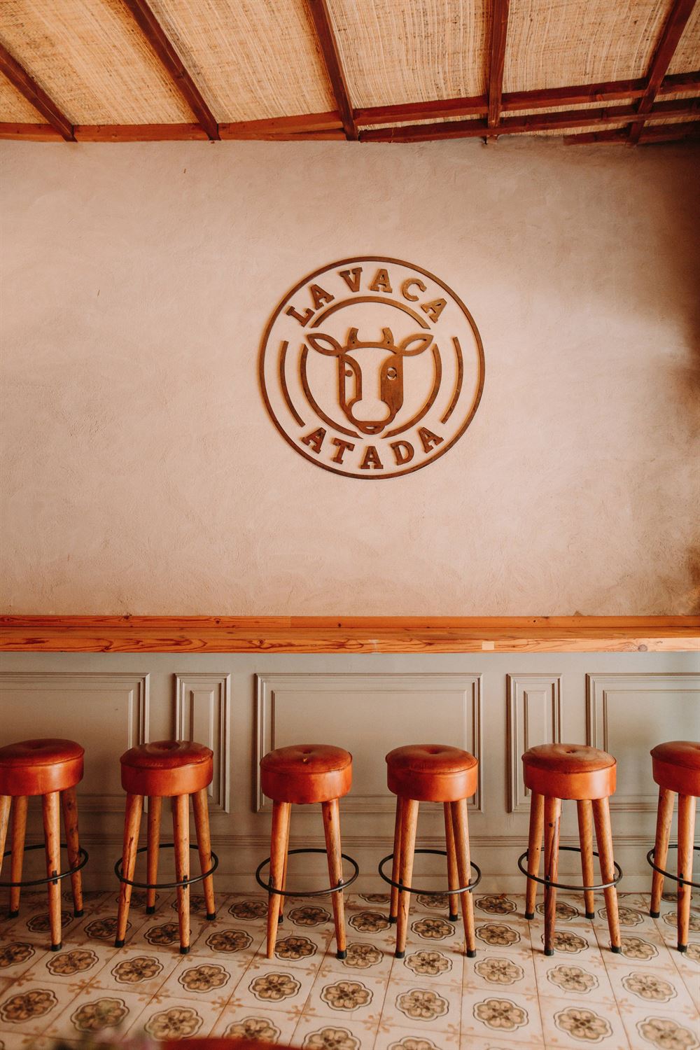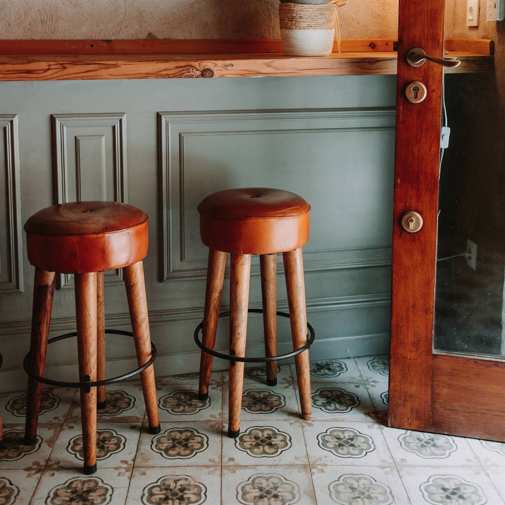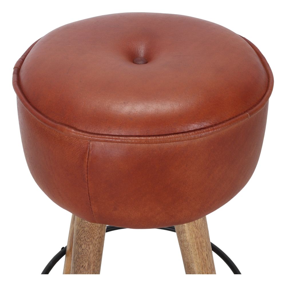 Tabouret haut en cuir et en bois Colt, de style industriel et vintage.